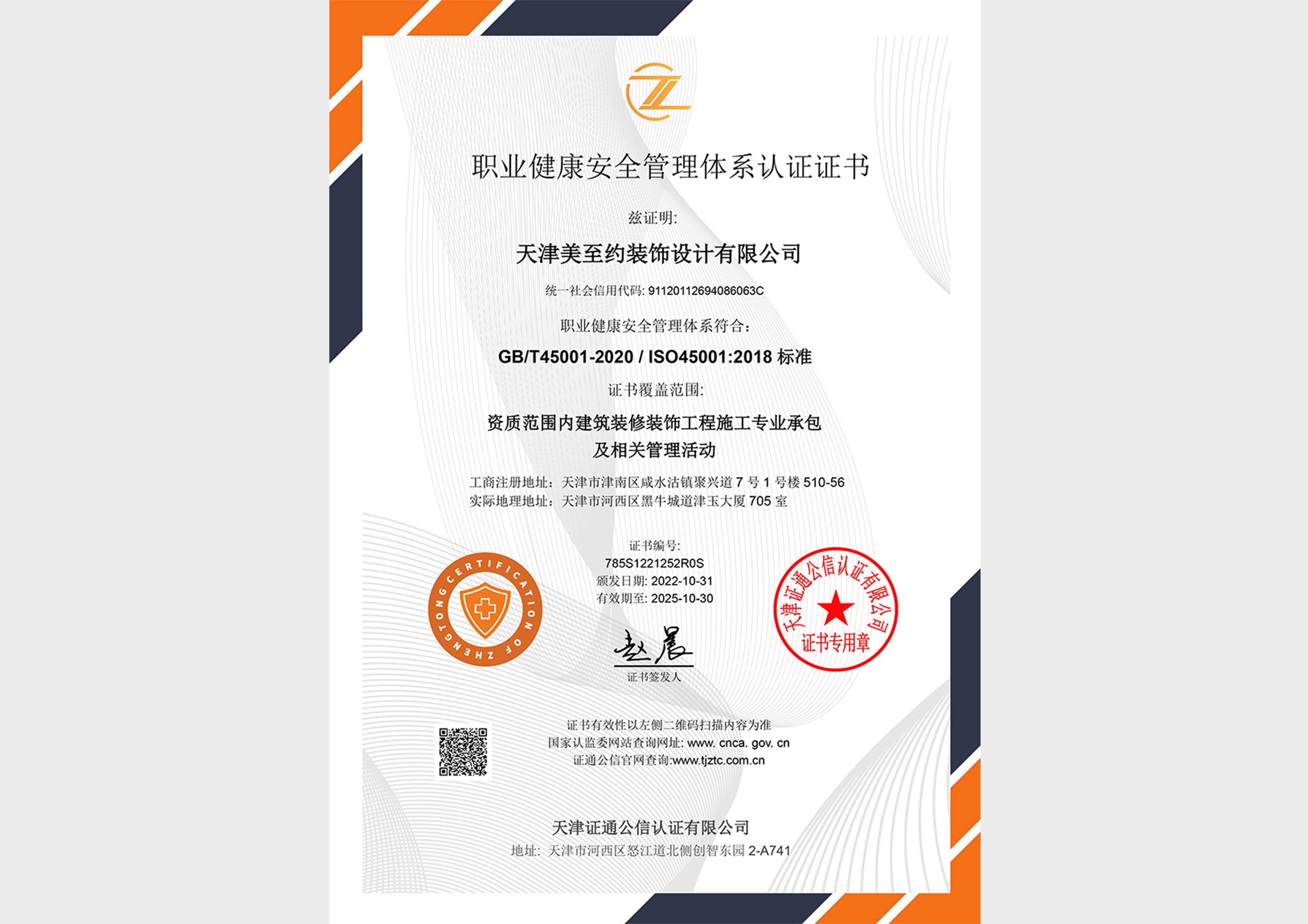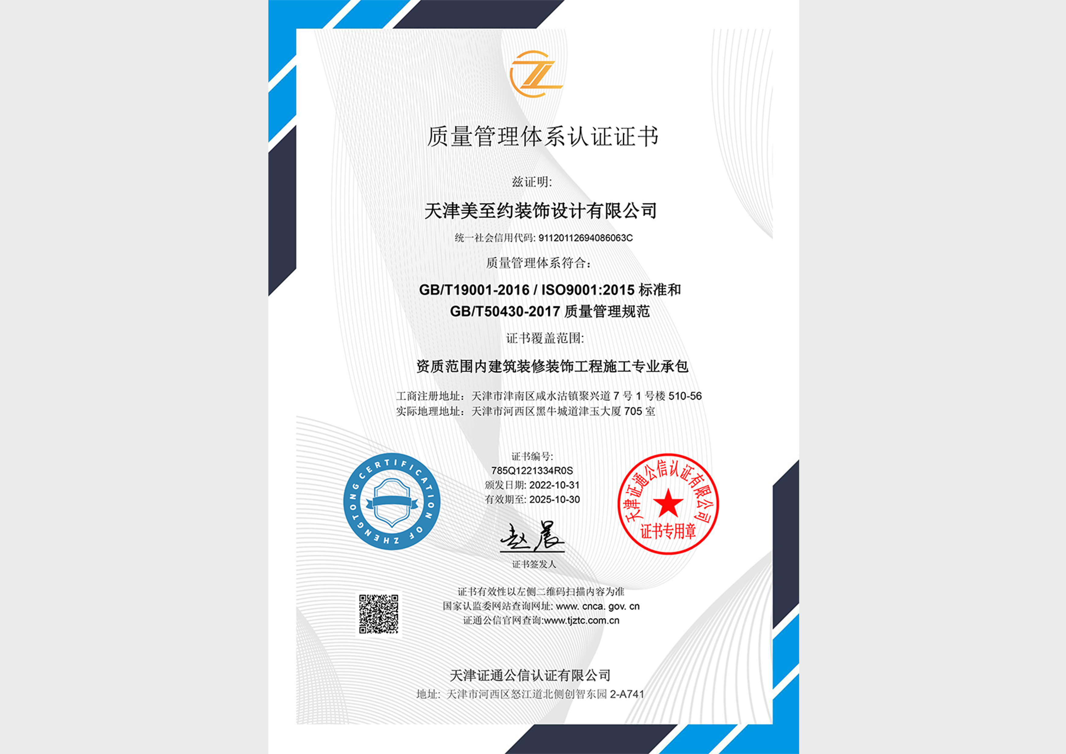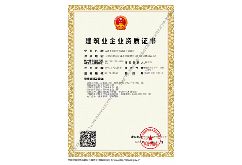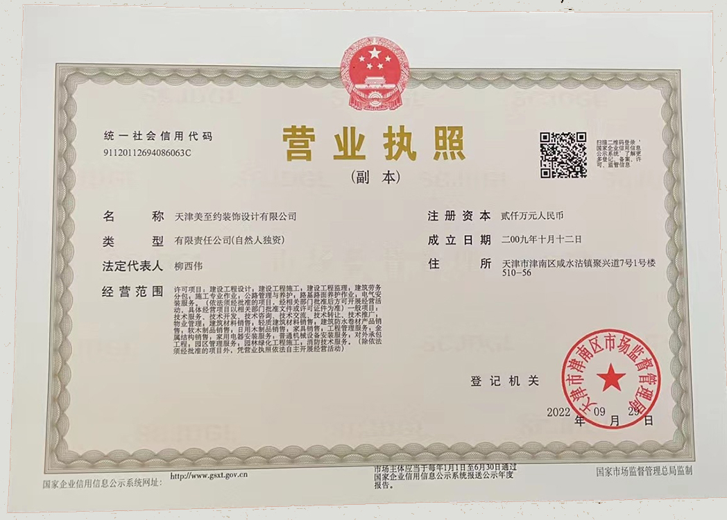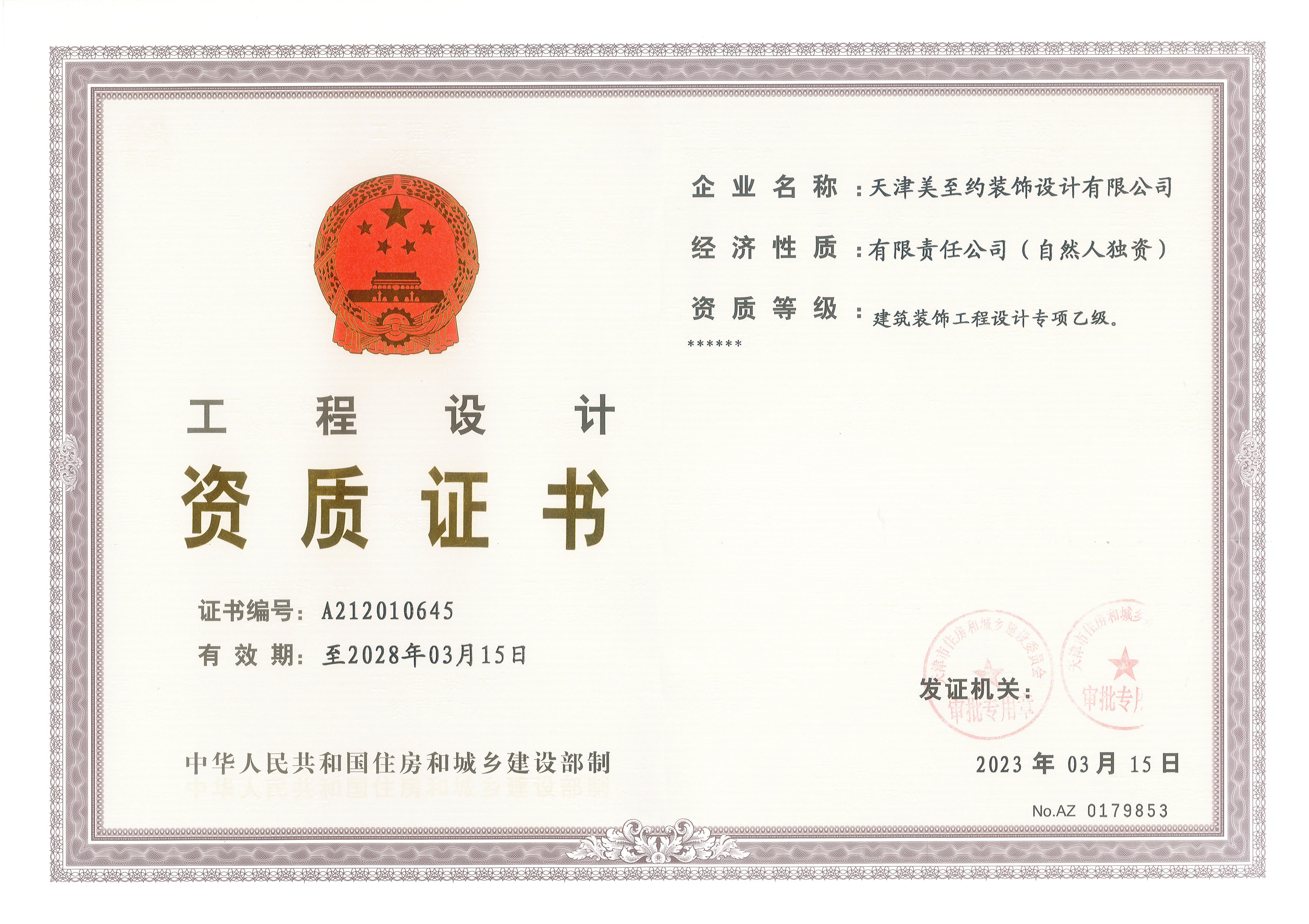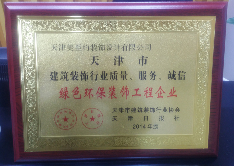 2022年4月美至約裝飾被天津市建筑裝飾行業(yè)協(xié)會(huì)評(píng)為“天津市優(yōu)秀建筑裝飾企業(yè)”